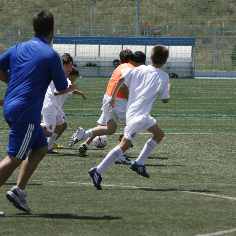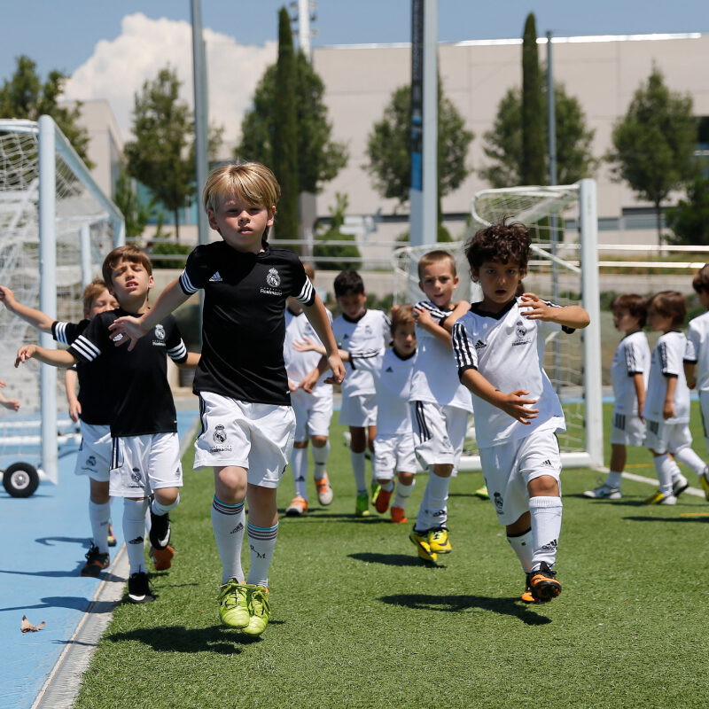 Our methodology focuses on the learning and participation of each child as part of a team, promoting decision-making, collaboration, and growth through football and values. The Real Madrid Foundation’s approach integrates technical, tactical, physical, and cognitive aspects in an educational way, always guided by respect, motivation, effort, and teamwork.